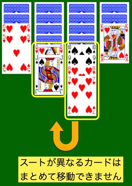 例2:スートが異なるカードを含むと移動できない